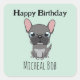 Pegatina Cuadrada Cute gray happy birthday custom name pug dog blue
