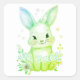 Pegatina Cuadrada Cute Green Bunny Party Theme Pastel Floral