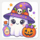 Pegatina Cuadrada Cute Halloween Ghost Witch Sticker – Kawaii Ghost