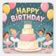 Pegatina Cuadrada Cute Happy Birthday ballerina theme