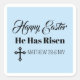 Pegatina Cuadrada Cute Happy Easter He Has Risen Bible Verse blue