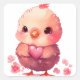 Pegatina Cuadrada Cute Heart Chick Día de San Valentín