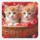 Pegatina Cuadrada Cute Kittens in a Straw Basket