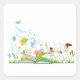 Pegatina Cuadrada Cute Kitty leyendo un libro.