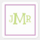 Pegatina Cuadrada Cute Lavender y Green Monogram Initisquare