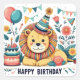Pegatina Cuadrada Cute León Feliz Cumpleaños Sombrero de Fiesta