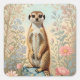 Pegatina Cuadrada Cute Little Meerkat Pastel Floral