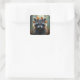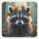 Pegatina Cuadrada Cute Mapache en Hojas de Otoño