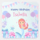 Pegatina Cuadrada Cute Mermaid Rainbow Watercolor Fiesta de cumpleañ