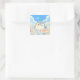 Pegatina Cuadrada Cute Penguin in Colorful Spring Meadow