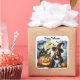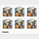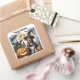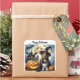 Una linda imagen de un perro disfrazado de bruja, con calabazas y murciélagos, aparece en esta pegatina cuadrada de Halloween. Con el mensaje, "Feliz Halloween", hace que esta sea una excelente pegatina para usar en envíos especiales, decoración, scrapbooking y más.