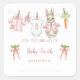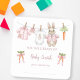 Pegatina Cuadrada Cute Pink Bunny Girl Clothesline Book Plate