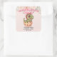 Pegatina Cuadrada Cute Pink Dino Hatching Soon