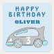 Pegatina Cuadrada Cute Race Car Blue Boy Feliz cumpleaños