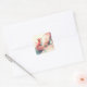 Pegatina Cuadrada Cute Red Fox Under Pink Cherry Blossom Tree