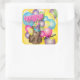 Pegatina Cuadrada Cute Silly Monkey Yellow Birday Party