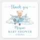 These Cute Teddy Bear Pilot Baby Shower Thank You Square Sticker are the perfect finishing touch for your baby shower favors, gift bags, or envelopes. Featuring a delightful watercolor illustration of a sweet teddy bear pilot soaring in a gentle blue airplane amidst soft, dreamy clouds.The customizable design allows you to add the mom-to-be's name and the date of the shower, making each personalized baby shower sticker a unique keepsake.