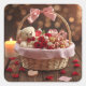 Pegatina Cuadrada Cute Teddy Rose Basket Valentine Heart