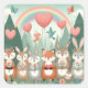 Pegatina Cuadrada Cute Woodland Creature rainbow valentine