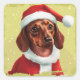 Pegatina Cuadrada Dachshund Con El Equipo De Santa Claus - Navidades