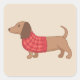 Pegatina Cuadrada Dachshund Wiener Perro suéter de sebo rojo en beig