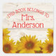 Este pequeño pegatina cuadrado presenta una temática rústica de casa de campo con margaritas amarillas sobre un fondo de ciénaga. El texto dice "Este libro pertenece a (nombre del profesor)".