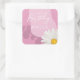 Pegatina Cuadrada Daisy blanco de verano rosado Feliz cumpleaños Fie
