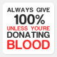 Pegatina Cuadrada Dale el 100% a menos que estés donando sangre