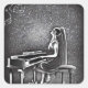 Pegatina Cuadrada Dama de pelo largo jugando al piano
