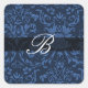 Pegatina Cuadrada Damasco azul con caligrafía monográfica B