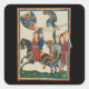 Pegatina Cuadrada Damsel en peligro, arte medieval del siglo XIV