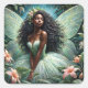 Pegatina Cuadrada Dark-Skinned Fairy In Mint Green Botanical
