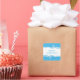 Un sello de sobre de cinta y lazo rayado diseñado para acompañar "Tarjeta de Navidad de foto de Querido Jesús"