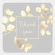 Pegatina cuadrada de agradecimiento de hojas doradas gris claro romántico para cartas elegantes, regalos elegantes, boda clásica y para cumpleaños hermoso y para pequeños negocios.