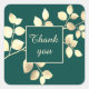 Pegatina cuadrada de agradecimiento de hojas doradas con verde oscuro romántico para cartas elegantes, regalos elegantes, boda clásica y para cumpleaños hermoso y para pequeño negocio.