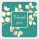 Pegatina cuadrada de agradecimiento de hojas doradas con verde oscuro romántico para cartas elegantes, regalos elegantes, boda clásica y para cumpleaños hermoso y para pequeños negocios.