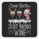 Pegatina Cuadrada Dear Santa Just Bring Wine Xmas Drinking Party
