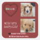 A tender memorial design created to honor pets lost to hemangiosarcoma. The layout features a muted deep red background with soft off‑white text and a gentle halo for clarity. A paw‑print heart outline with your pet’s name sits across from the top photo, while two stacked photos appear on the right. To the left of the lower photo is the phrase “Miss you baby girl”, and along the bottom, a small paw icon leads into Taken too soon by hemangiosarcoma. This design blends warmth, remembrance, and clean readability, creating a meaningful keepsake for anyone grieving a beloved companion.