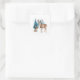 Pegatina Cuadrada Deer and doe with snowy pine tree