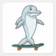 Pegatina Cuadrada Delfín como Skater con Skateboard