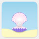 Diseño bonito, perfecto para quien ame el verano y las conchas. concha rosa y morada con una hermosa perla, paisaje de playa, cielo azul, arena amarilla. ¡Acentúa tu estilo y espacio con este precioso arte!
