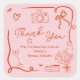 Expresa tu gratitud con nuestros stickers de agradecimiento para despedida de soltera Retro Pink Red Bridal Shower Thank You! Este encantador diseño presenta una deliciosa variedad de elementos inspirados en el vintage, incluyendo globos, cámaras, corazones y un hermoso ramo de flores en un jarrón. Enmarcado por una caprichosa cinta ondulada y serpenteante, cada detalle añade calidez y personalidad a tu mensaje sincero. Con colores personalizables y una fuente manuscrita, esta tarjeta es la forma perfecta de transmitir tu agradecimiento con estilo. ¡Deja que tu aprecio brille con esta inolvidable tarjeta!