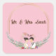 Pegatina Cuadrada Día de boda con nombre personalizado en rosa