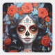 Pegatina Cuadrada Día De Los Muertos En El Chica De La Calavera Del