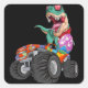 Pegatina Cuadrada Día De Pascua Para Rex Dino Monstruando Camiones