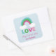 Pegatina Cuadrada Día de San Valentín del amor al arcoiris