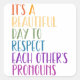 Haz que tu voz sea escuchada con la declaración de poder, Es un bello día respetar los Pronouns de los demás en un gran tipo de letra original excéntrica a la izquierda justificada en todos los colores de la bandera arcoíris. Únete al movimiento hacia una sociedad más inclusiva donde los pronombres de todos sean honrados y respetados, o como un regalo reflexivo para alguien que cree en la importancia de la inclusividad de género, es un aliado de lgbtqa+, o usar orgullosamente durante el Mes del Orgullo.