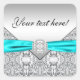 Pegatinas azules verdes y plateadas con una bonita cinta de diamantes azul verde sobre un hermoso fondo de encaje plateado. Puede elegir la forma de la pegatina y añadir el texto que desee en el estilo de letra y color que elija. Este es un diseño impreso sin diamantes, lazos, encajes reales, etc.