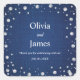Tema de regadera de boda de pareja de mezclilla y perlas - ¡Pegatina cuadrada de regadera de boda de pareja de diamantes de mezclilla elegante azul!