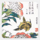 Pegatina Cuadrada Dibujo japonés vintage, Peonies y Sparrow